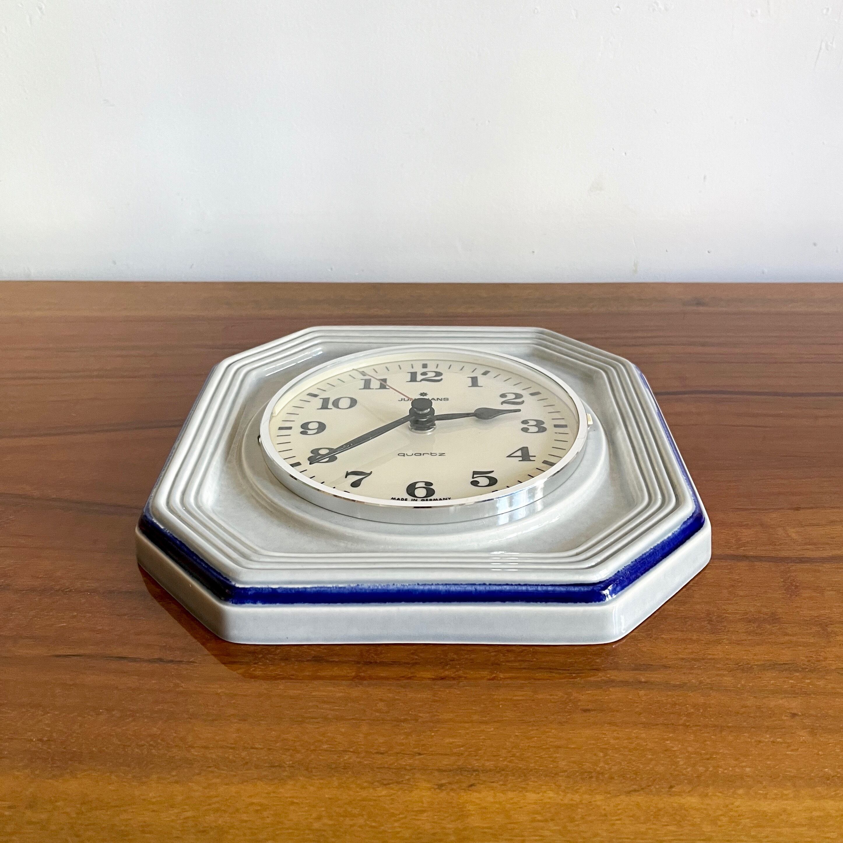 "JUNGHANS" Vintage Pottery Wall Clock 1970's ドイツ Blue Ciel