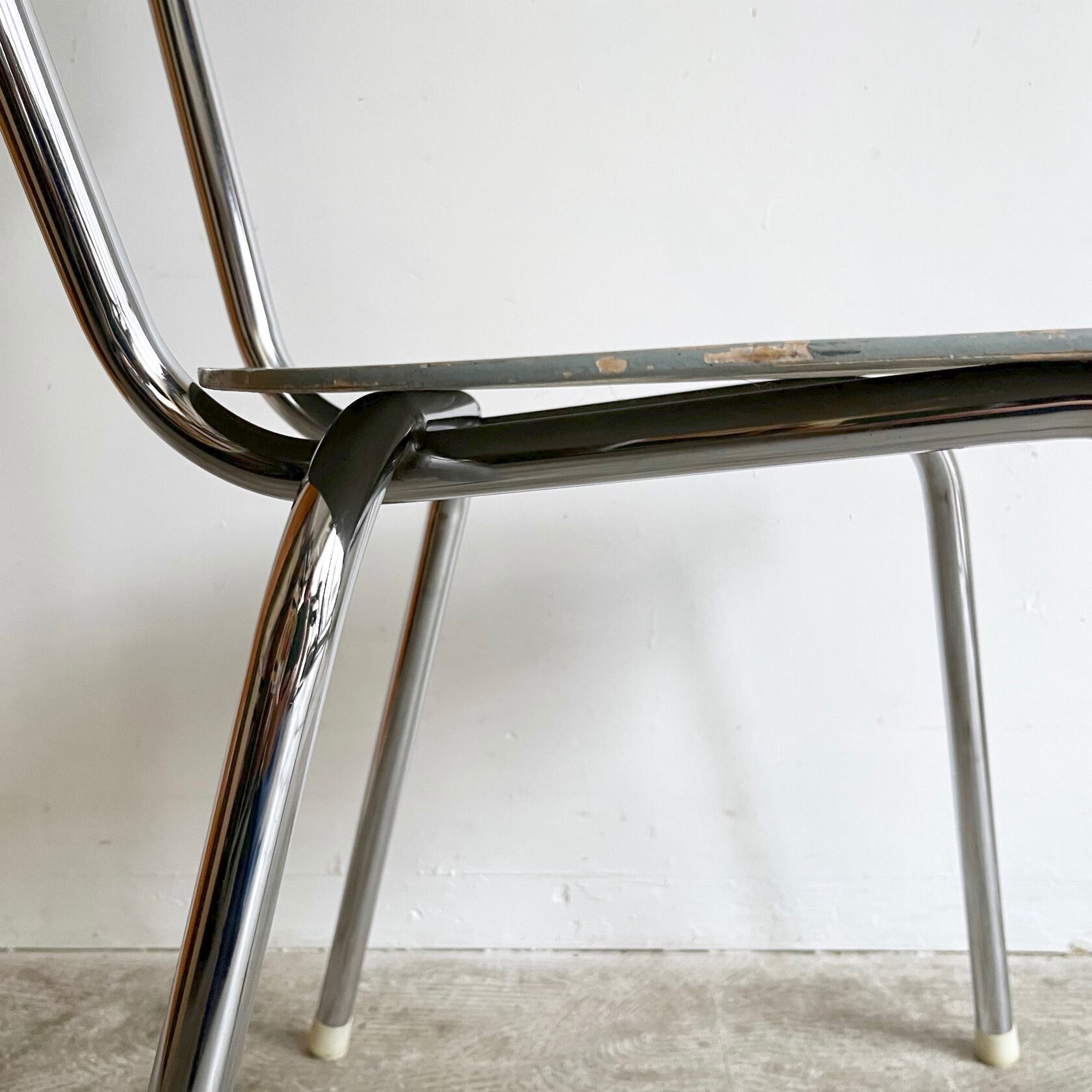 経年変化で味のあるシートに美しいクロームのパイプフレーム。
