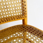 その優しく素朴なフォルムは座面、背もたれの網目とシンクロして