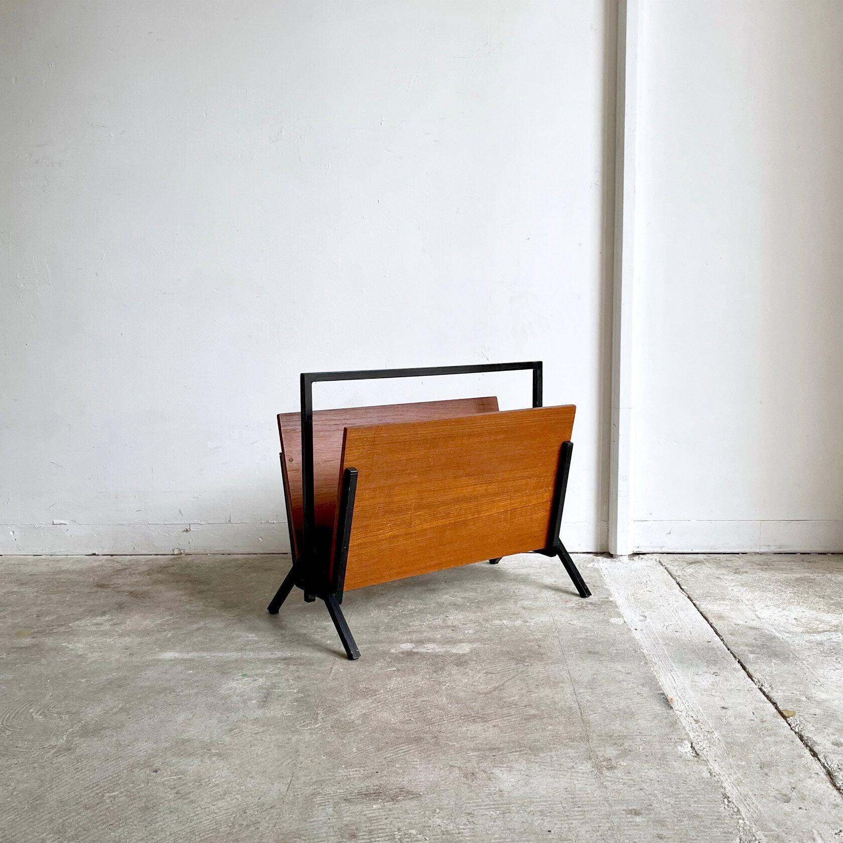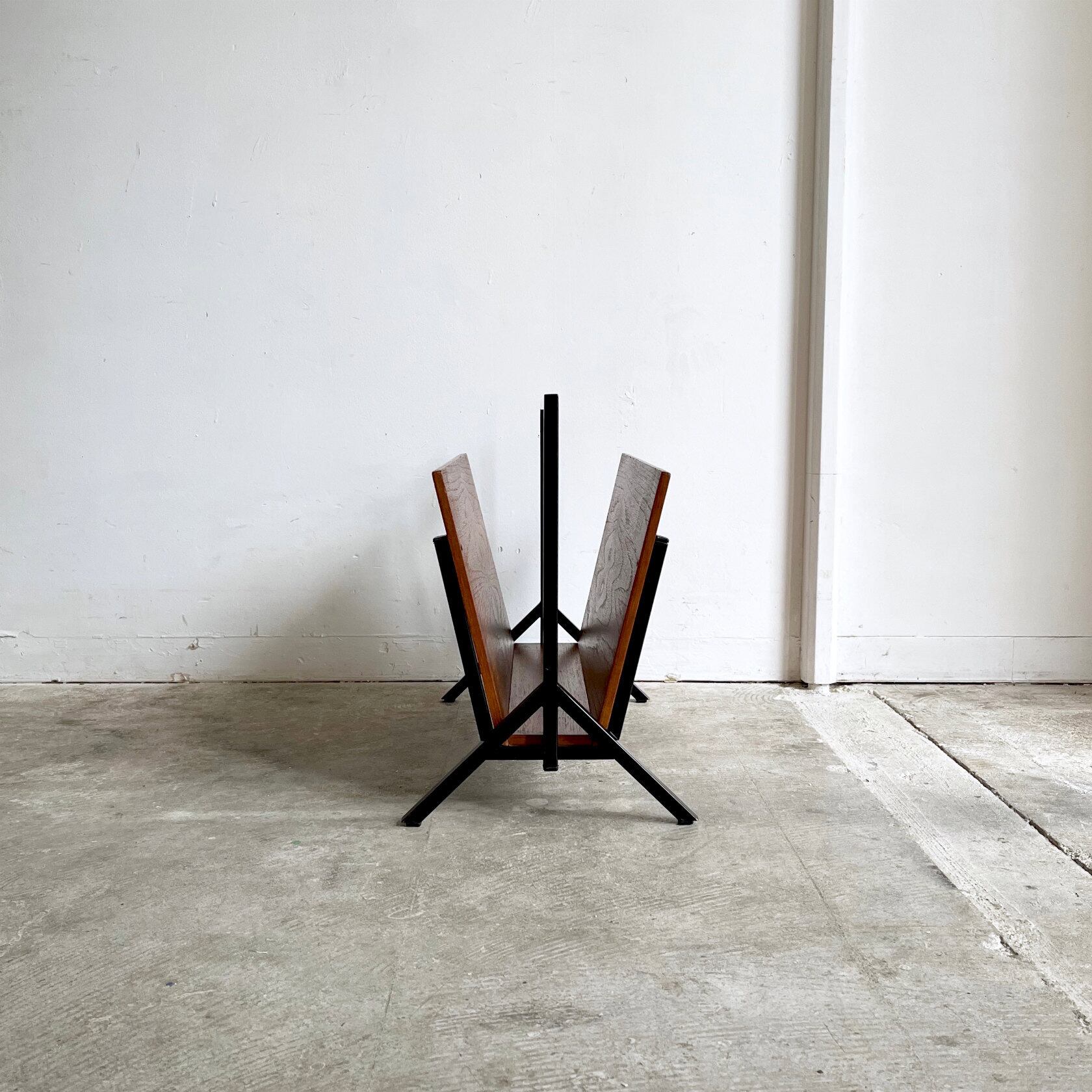 Dutch Vintage Teak & Metal Magazine Rack 1960's オランダ