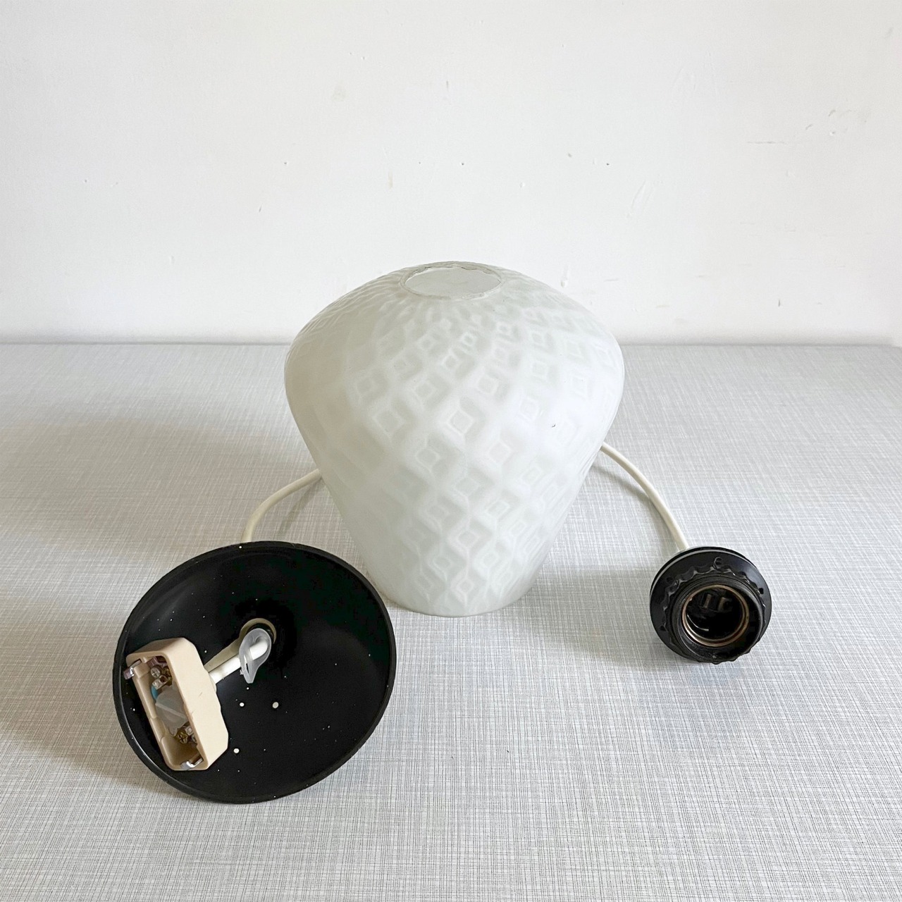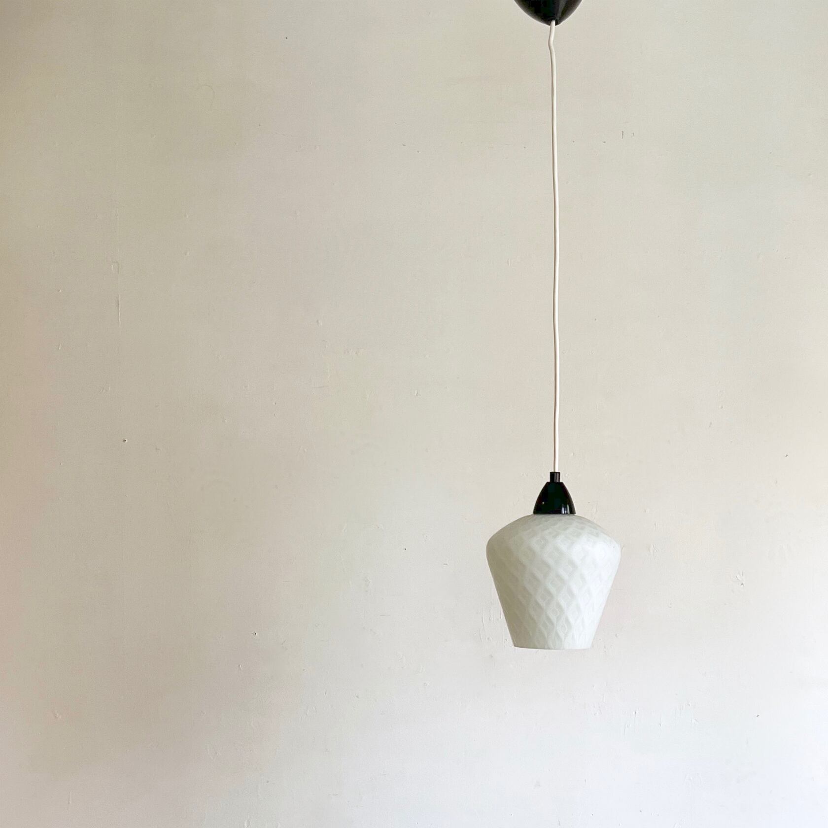 乳白色のガラス表面にはひし形の模様がほどこされクラシカルな雰囲気。