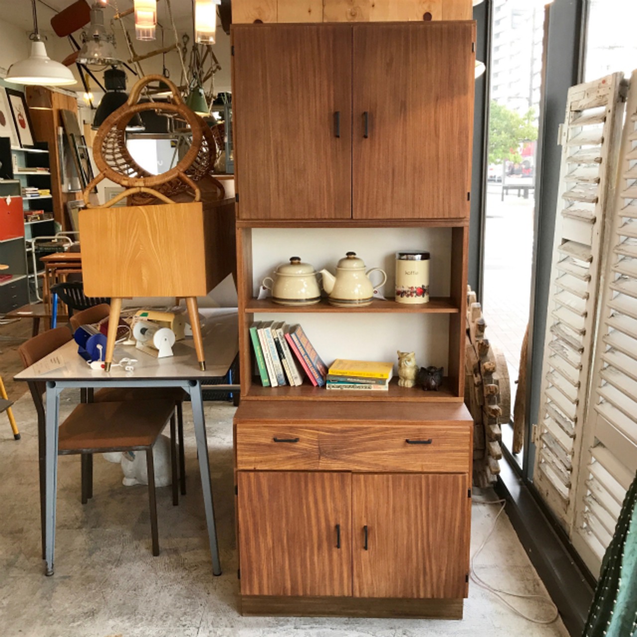 チークの木目と白い背板のコントラストがきれいなユニットキャビネットが入荷しました。