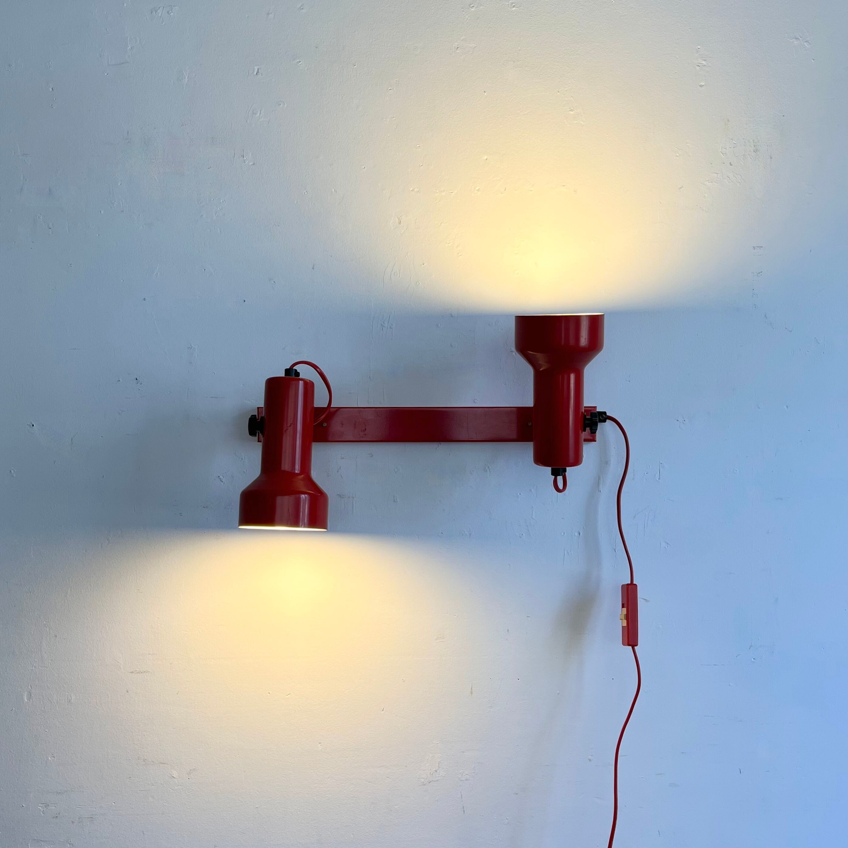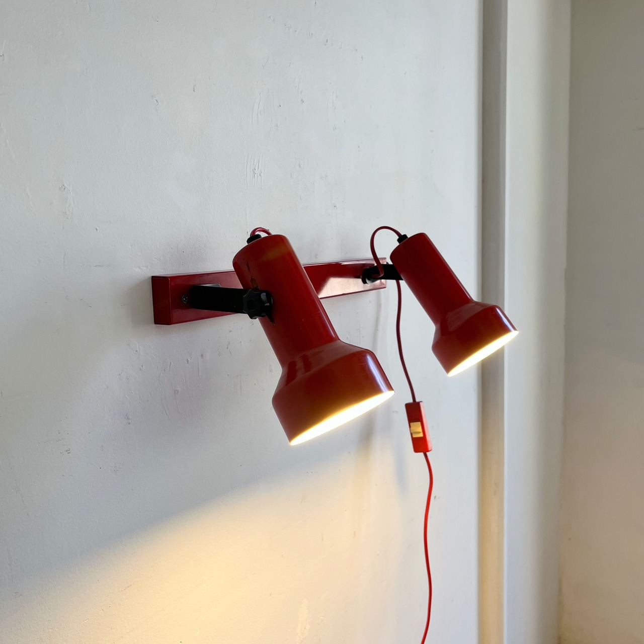 Vintage 2 Lights Metal Wall Lamp Red 1970's オランダ