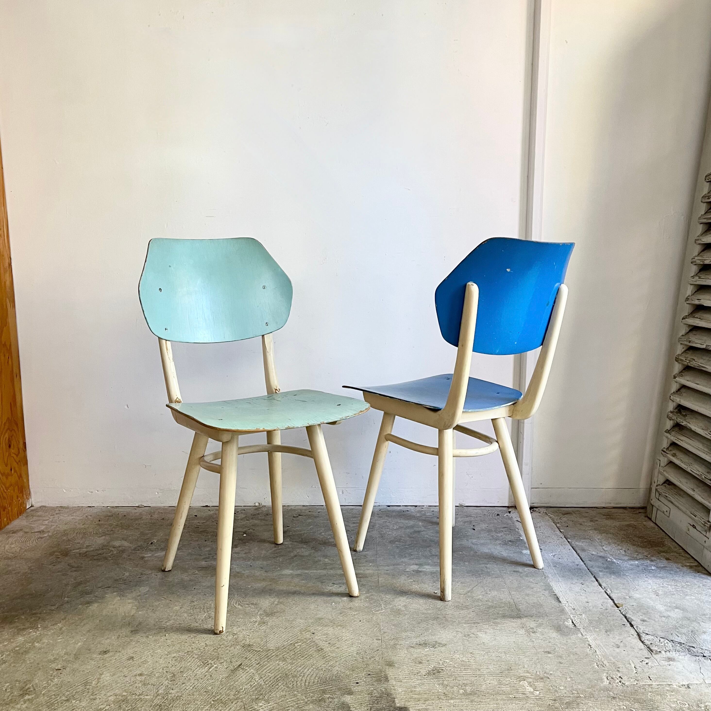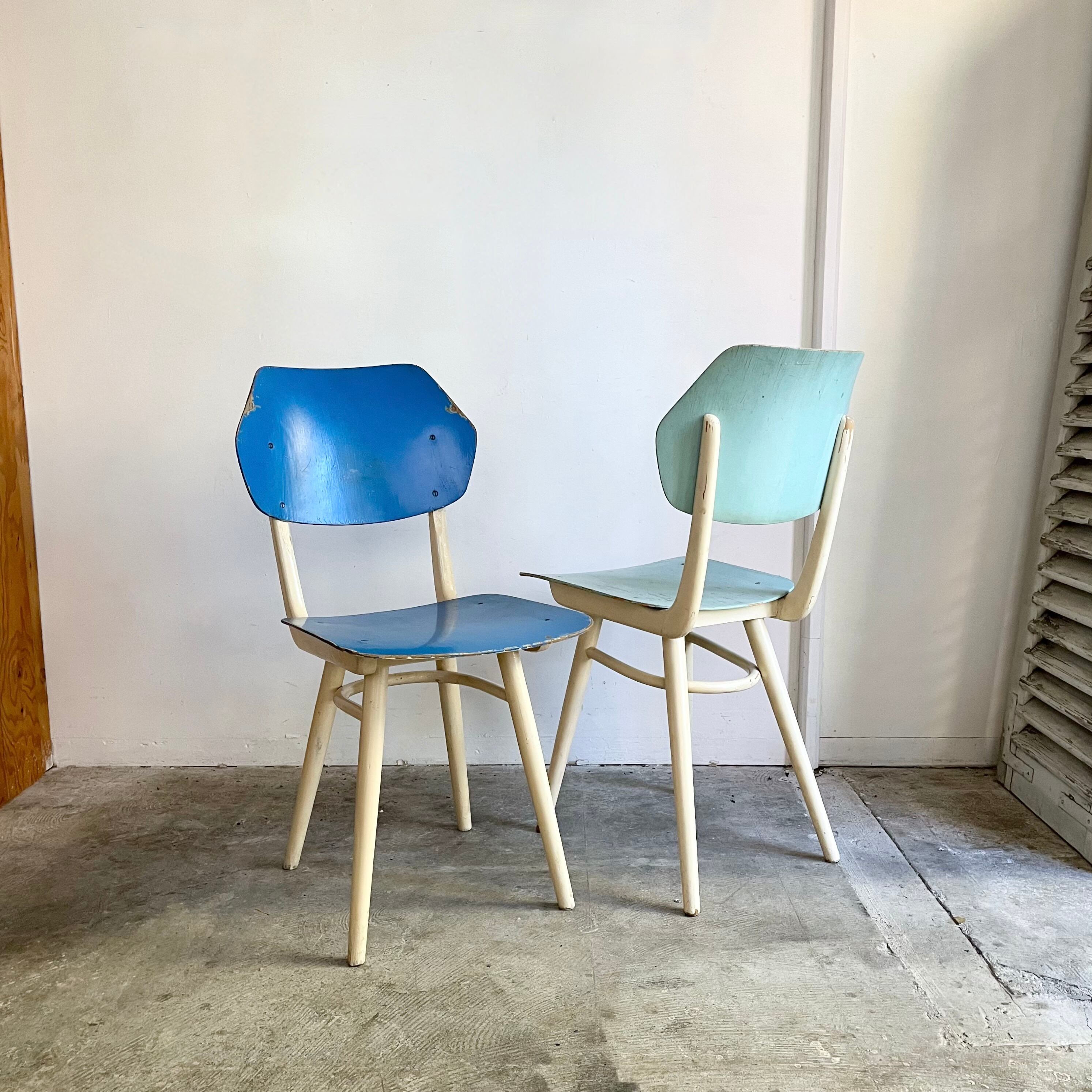 "TON" Vintage Painted Dining Chair / L.BLUE 1960's チェコ