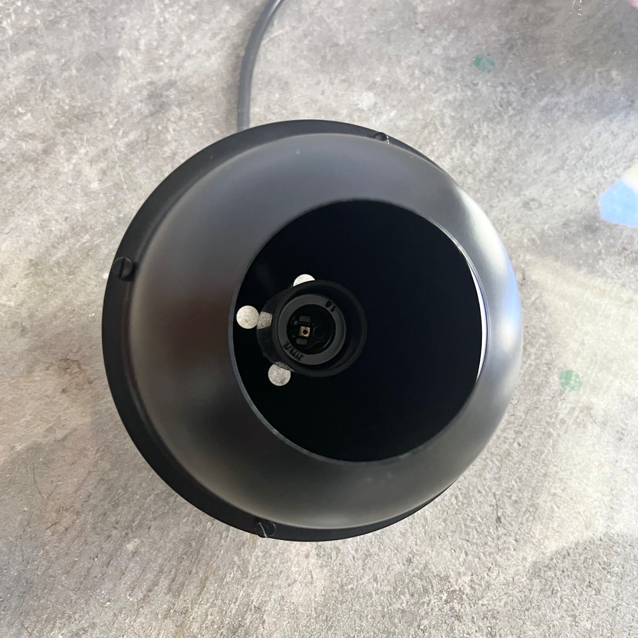 直径400mmのアクリルのシェードの中心にブラックメタル製の球体