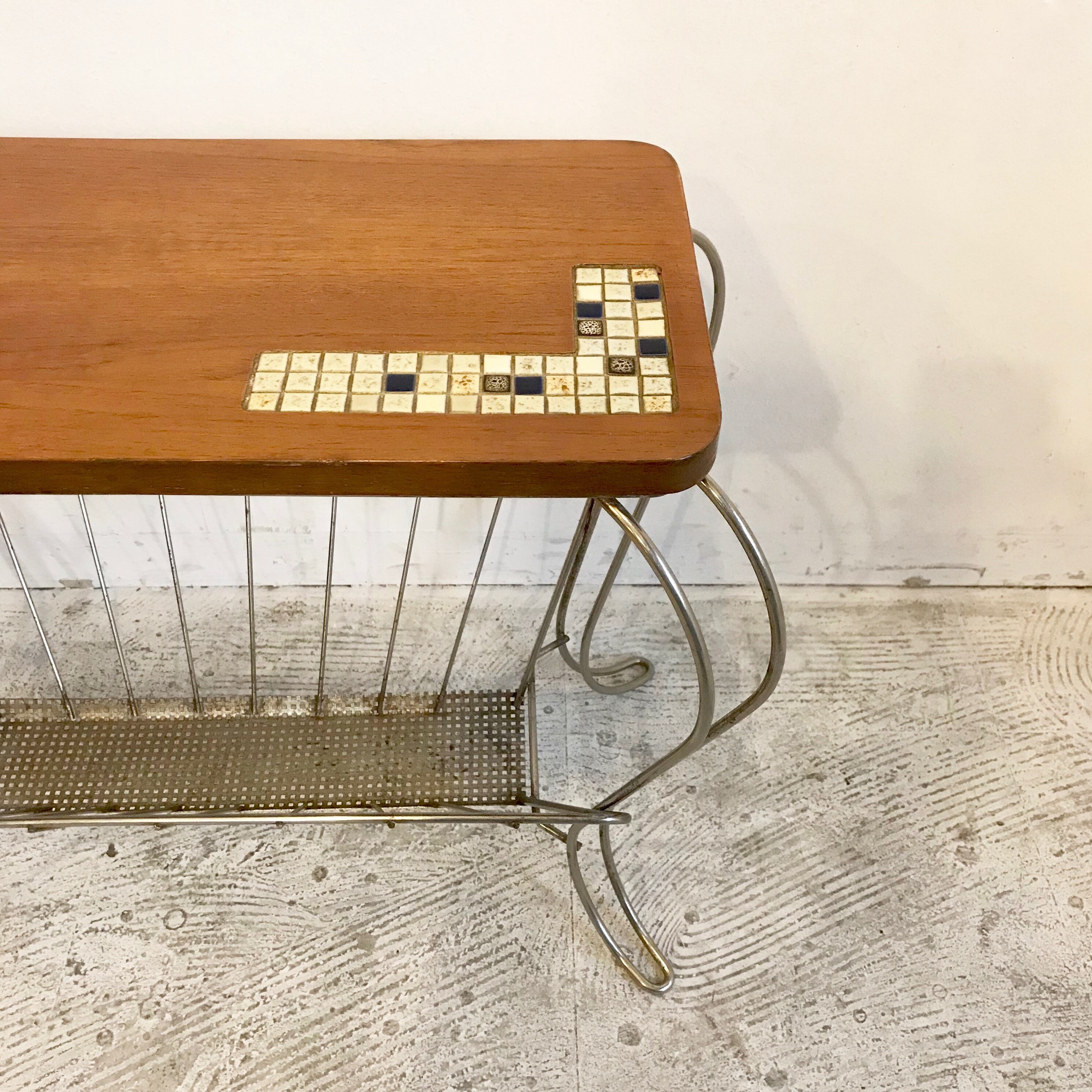 モザイクタイル付きチークウッド天板、メタルフレーム