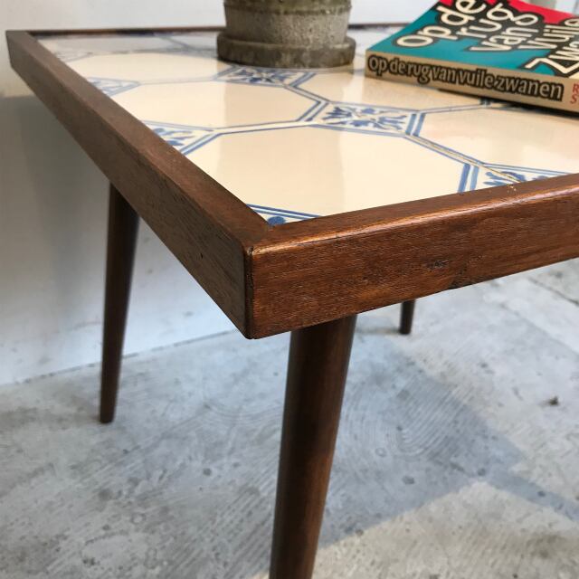 天板には白地にブルーが特徴のオランダ、デルフト焼きのタイルが使用されていて