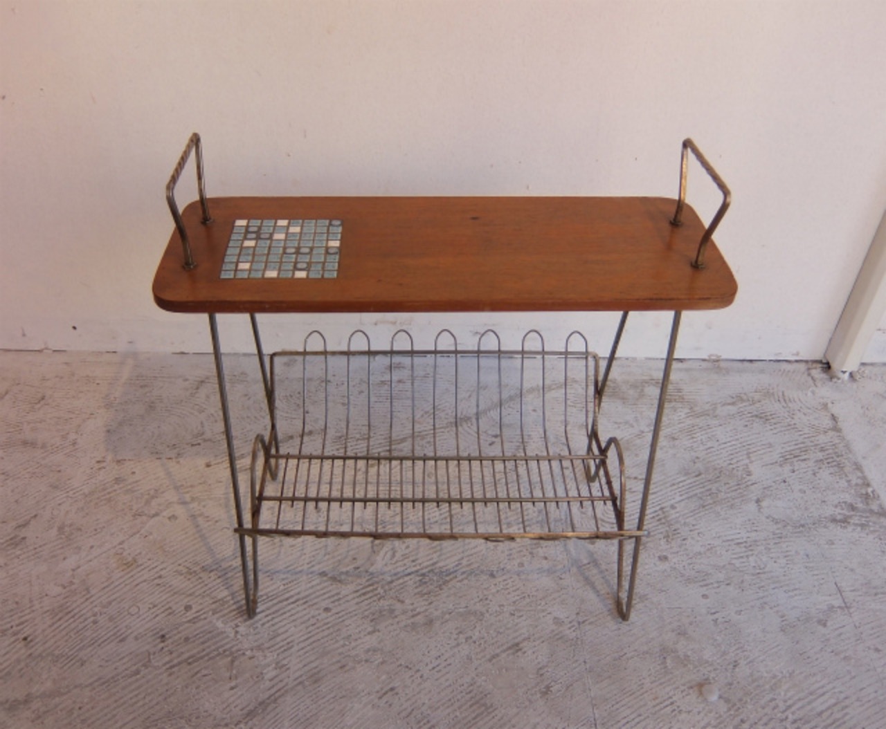 華奢なフレームの、マガジンラック付きサイドテーブルです。