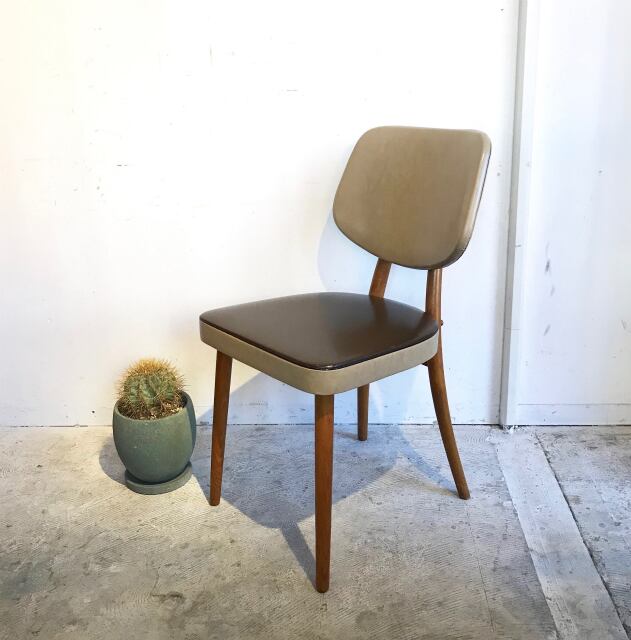 ダッチデザインを連想させる配色のシートとオーク材削り出しのフレーム、脚のバランスが良い雰囲気です。