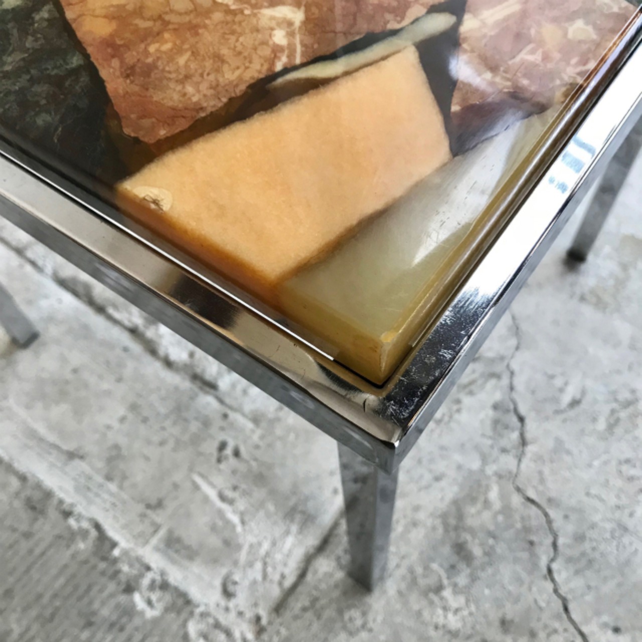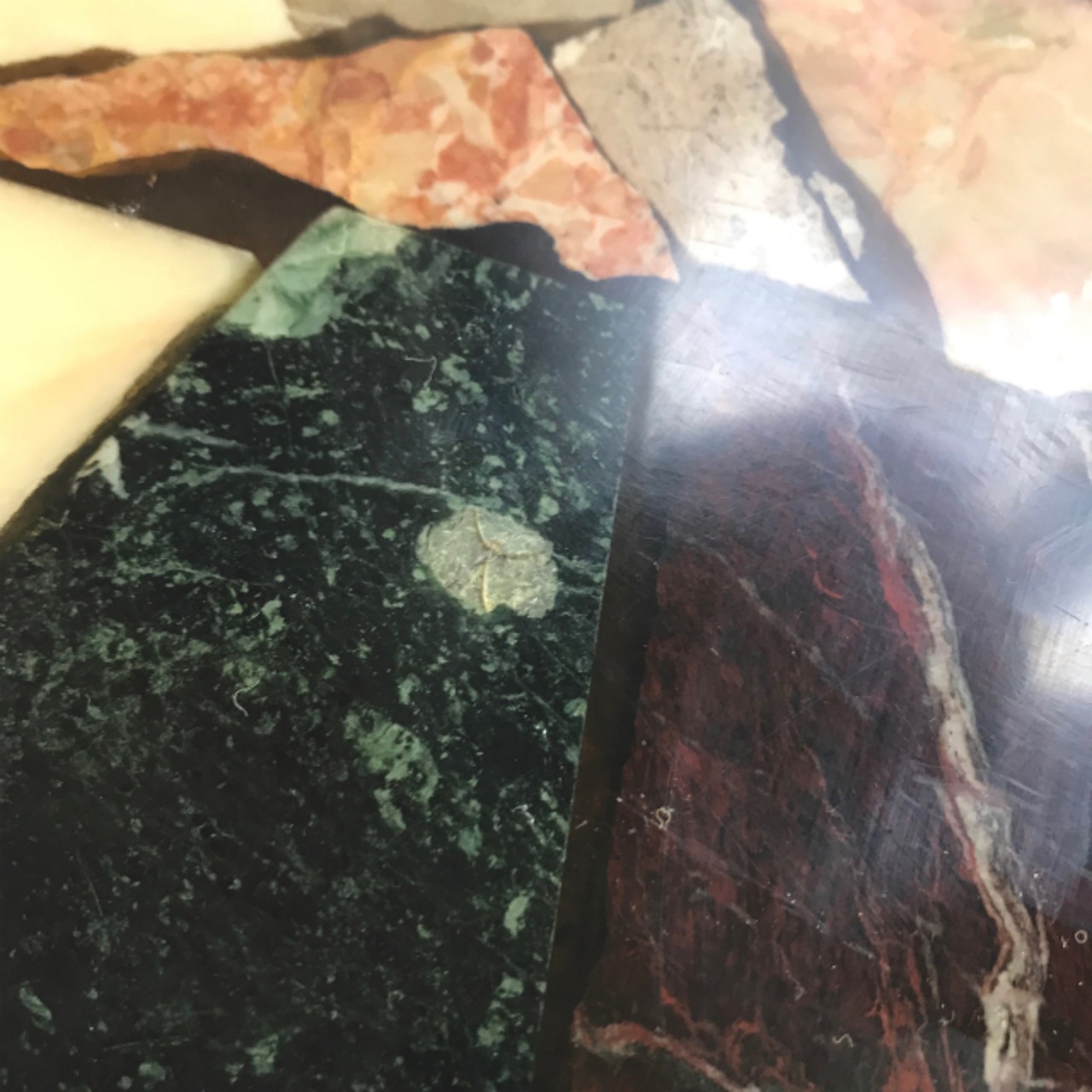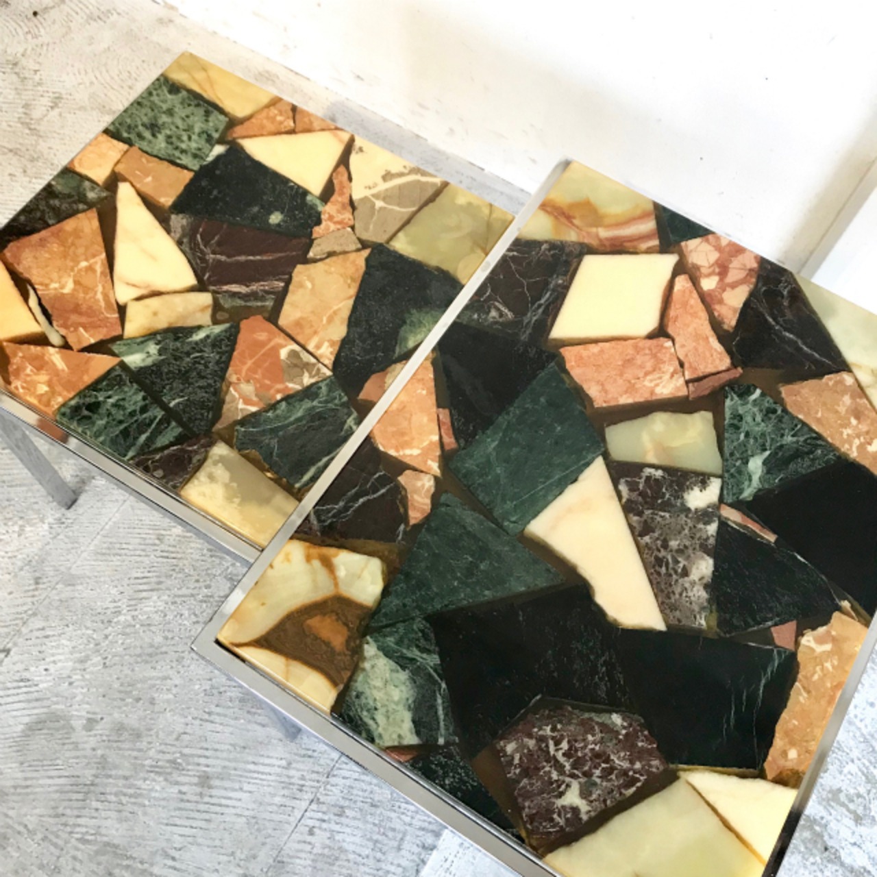 モザイク状に並べられた様々な大理石をレジンでコーティング。