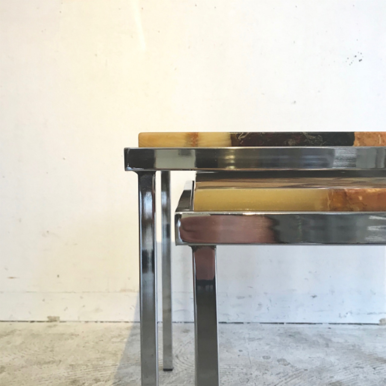 オランダで買い付けた大理石天板のネストテーブルです。